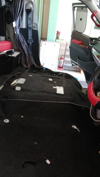 シート下に断熱材設置の追加依頼をいただいたので、フロアカーペット下に取付けます。