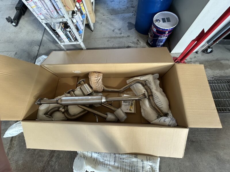 お客様が弊社直送でご購入されたマフラーを取り付けます