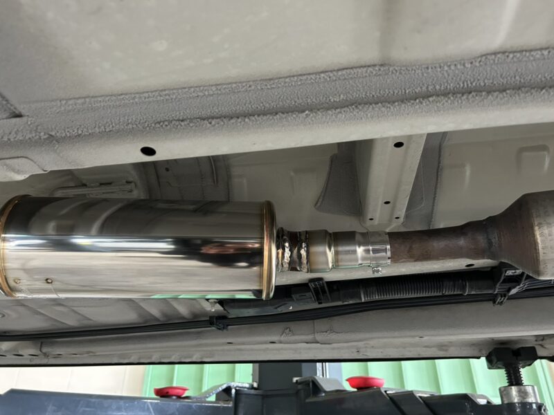 純正マフラーを取り外し、触媒の前で切断します