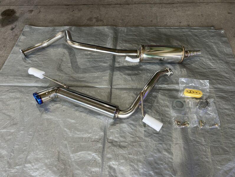ご用意いただいたマフラーをはめ込み、バンドで固定して車に据え付けて完成