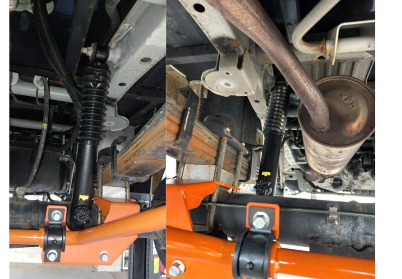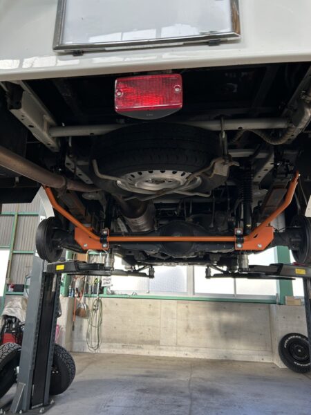 キャンピングカー特有の走行中の乗り心地を改善したいとのことで、ショックアブソーバーの交換と前後のスタビライザー取付けとなります。